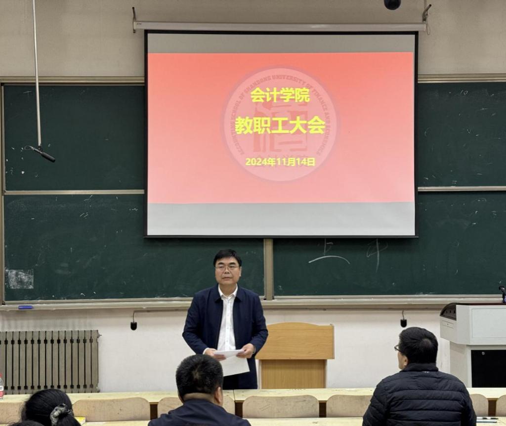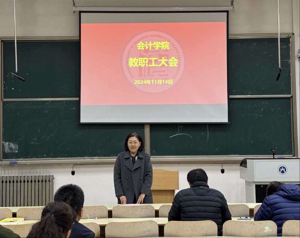 11月14日,会计学院教职工大会在燕山校区召开。副校长张红霞参加会议并讲话。会议由会计学院党委书记邵文涛主持。