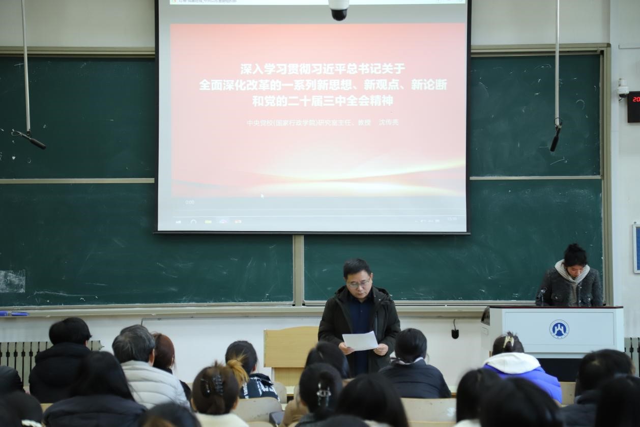 随后,邵文涛传达学校《关于开展科级及以下干部、党员学习贯彻党的二十届三中全会精神培训的通知》精神,按照《会计学院关于开展学习贯彻党的二十届三中全会精神培训工作方案》,邵文涛带领科级及以下干部、党员深入学习习近平总书记关于全面深化改革的一系列新思想、新观点、新论断和党的二十届三中全会精神,并集体观看了教学视频。他强调要深刻领会党的二十届三中全会精神,把握习近平法治思想的核心要义、丰富内涵和实践要求,切实把科学思想转化为法治建设的实际成效,不断应用到教学科研和日常生活中,形成学习贯彻习近平法治思想的浓厚氛围,努力推动习近平法治思想深入人心。