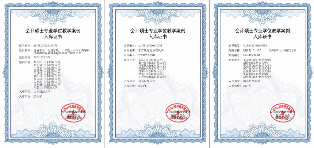 5月7日,全国会计专业学位研究生教育指导委员会官网公布了 “2024年会计硕士专业学位优秀教学案例入库名单”。会计学院共有3篇教学案例入选,分别为张志红教授等撰写的《逆境求变,巧借东风——深度(山东)数字科技集团的互联网票据盈利模式蝶变之路》、朱磊教授等撰写的《东方甄选的治理风波》以及王春燕副教授等撰写的《创新药“一哥”——百济神州上市破发之路》。