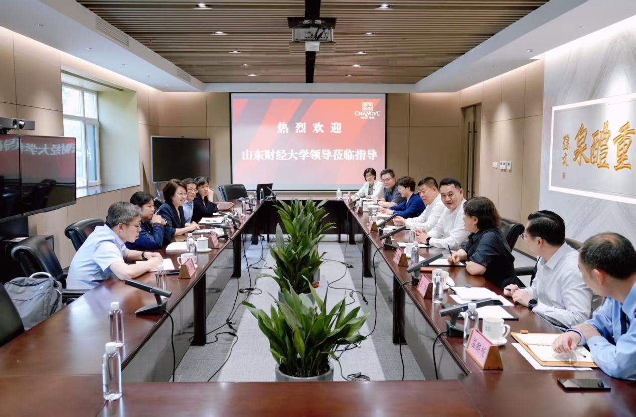 考察团首先来到有百年发展历史的民族品牌张裕集团。在座谈交流环节,张红霞介绍了学校的办学规模、学科特色及人才培养成果,她谈到山东财经大学一直致力于培养适应社会需求的高素质专业人才,希望以此次考察调研访企拓岗为契机,加强与张裕集团在人才培养、产学研融合、课程设计以及实践育人等方面的深度合作。