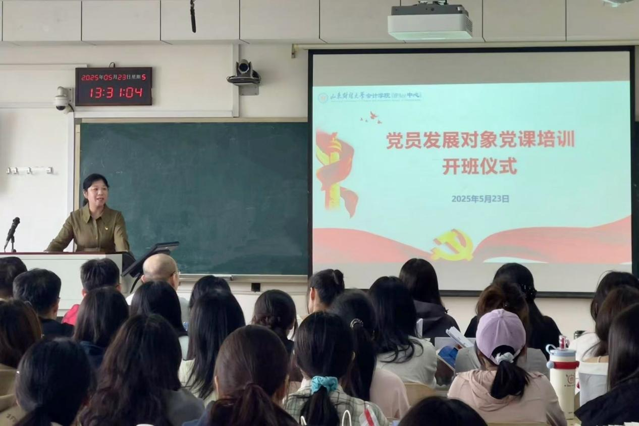 为进一步提高党员发展质量,全面提高党员发展对象的思想政治素质,5 月 23 日,会计学院分别在燕山校区和章丘校区举行第二十九期党员发展对象党课培训开班仪式。学院党委书记任海伦,副书记吕晓燕、张贞梅,全体辅导员老师、学生党支部书记及本次党员发展对象参加了仪式。