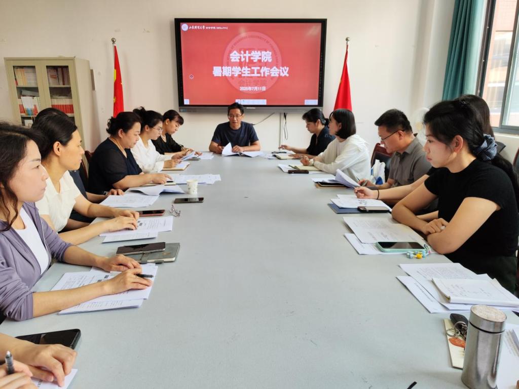 7月11日,会计学院召开暑期学生工作会议,党委书记任海伦,副书记吕晓燕、张贞梅和全体辅导员参加。