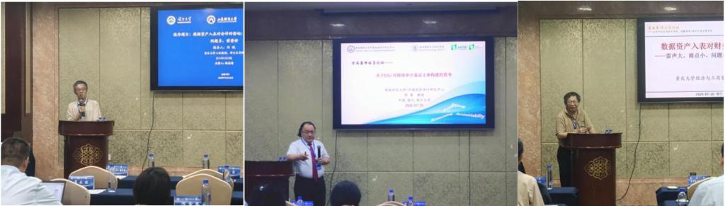开幕式结束后,论坛进入主题报告环节。主题报告上半场由哈尔滨工程大学杨忠海教授主持,西南财经大学中国政府审计研究中心主任蔡春教授,以《关于 ESG / 可持续审计鉴证主体构建的思考》为题,深入剖析了审计领域的现状与挑战,并提出了创新性的构建思路。随后,重庆大学刘斌教授就《数据资产入表对会计的影响:雷声大、雨点小,问题多、前景好》展开论述,分享了对数据资产与会计行业关系的独到见解,引发了在场学者的广泛思考。
