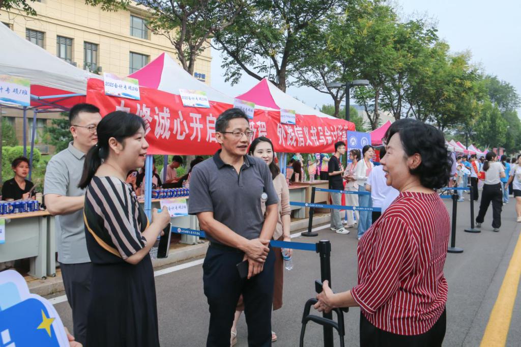 会计学院领导与老师始终参与迎新全过程,主动与本科生、研究生及其家长们亲切交流,详细介绍学院发展情况与培养理念。领导老师的深度参与,不仅让迎新氛围愈发浓厚,更让新生与家长切实感受到了学院的人文关怀与殷切期望。
