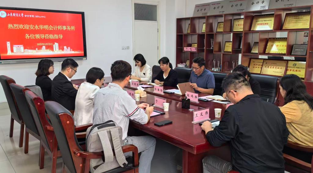 为深化产教融合、拓展就业育人平台,2025年9月25日下午,会计学院与安永华明会计师事务所中国智慧交付中心合伙人、负责人在燕山校区举行座谈交流。安永中国智慧交付中心合伙人王艳玲、济南交付中心负责人、2013级校友李勃、行政事务负责人于壮、审计经理、校友辛洋洋一行来访,学院党委书记任海伦、党委副书记吕晓燕、辅导员代表与学生代表共同参会。