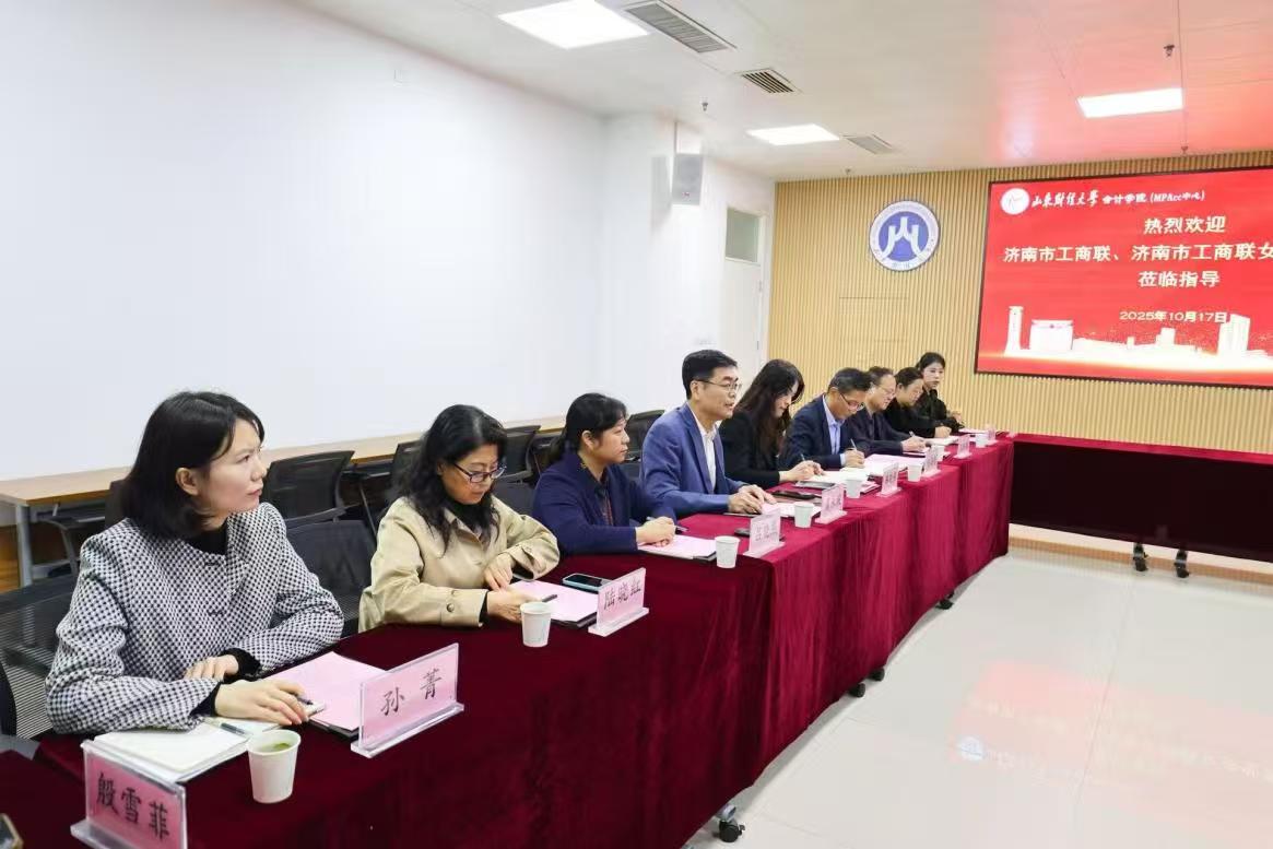 10月17日,济南市工商联、济南市工商联女企业家商会一行12人到访我校,在学校工会妇女工作委员会主任、副主席韩晓燕的陪同下到访会计学院,与学院班子成员、工会委员及教师代表进行亲切座谈并参观“岁月回响——红色会计主题展”。