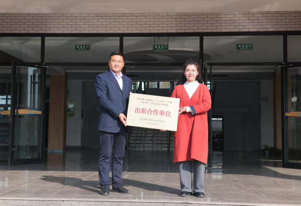 仪式上,卢化新校长代表鸡山小学,对会计学院团委及“星火”志愿者团队长期以来的真诚付出表示衷心感谢。随后,张慧娟从卢化新手中接过了由高新区管委会教育文体部授予的“出彩合作单位”牌匾。该荣誉属于全环境立德树人“三引导”行动中的“伙伴+”学生成长共同体项目,标志着双方合作的“书香少年行”阅读助学活动取得扎实成效,并获得教育主管部门的充分认可。