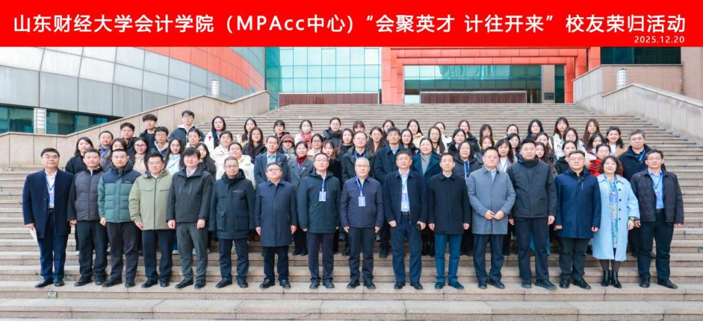 2025年12月20日,山东财经大学会计学院“会聚英才 计往开来”校友荣归暨推进高质量发展座谈会在燕山校区圆满举办。会计学院师生代表与全国各地优秀校友齐聚一堂,共叙同窗情谊,共商发展大计。副校长张红霞出席会议,会计学院院长葛永波担任主持。