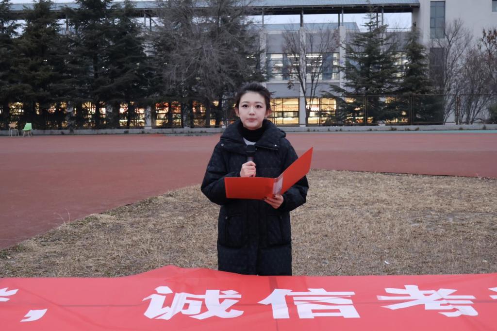 12月22日清晨,会计学院在章丘校区举行“内诚于心,外信于人——践行诚信考试,涵养高尚品格”主题升旗仪式。会计学院党委副书记张贞梅,团委书记张慧娟及2024、2025级全体本科生参加仪式。