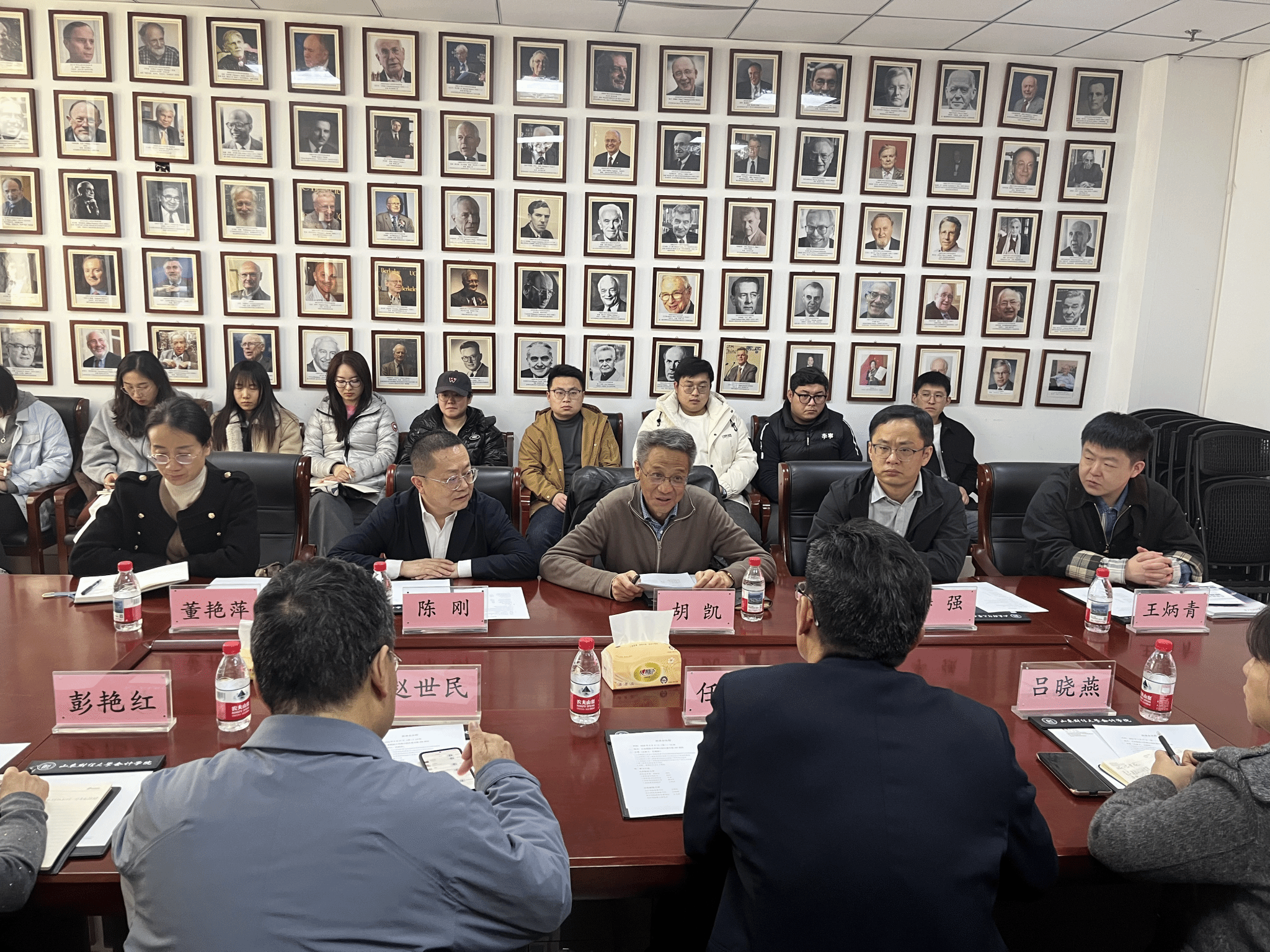 座谈交流结束后,全体与会人员集体合影留念,并共同参观了山东财经大学红色会计主题展。通过重温财经领域红色历史、感悟初心使命,进一步加深了两校师生的情感联结与思想共鸣。