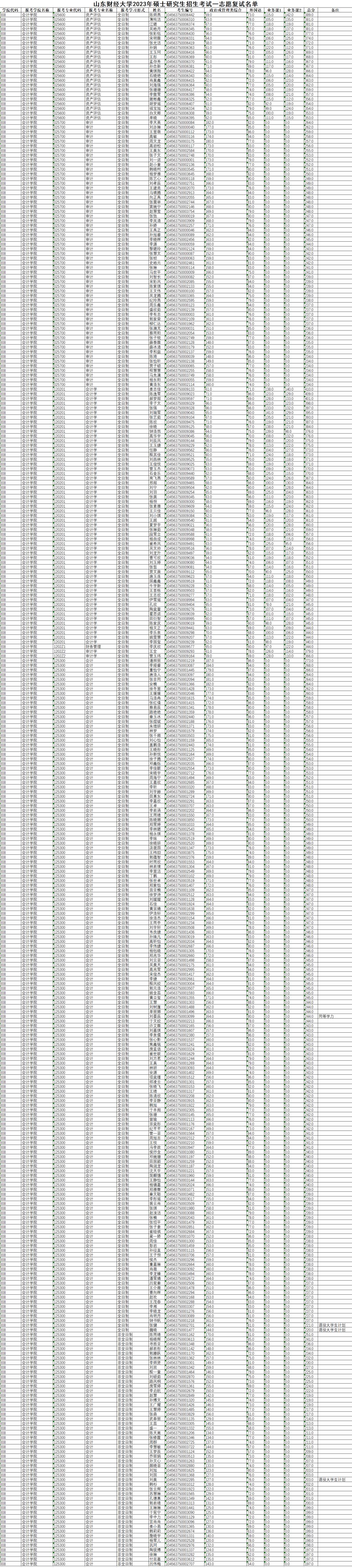 会计学院2023年硕士研究生复试名单(一志愿)
