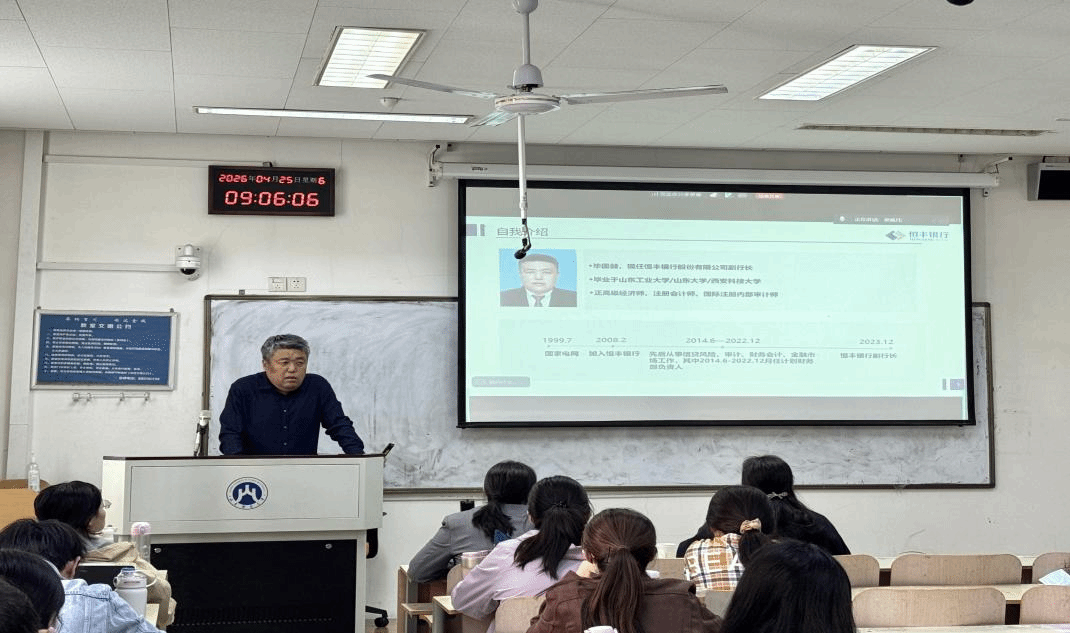 为加深学生对会计职业判断的理解,提升其创新思维,4月25日上午,会计学院(MPAcc中心)特邀恒丰银行股份有限公司副行长、正高级经济师、注册会计师毕国器开展了题为《会计:理性世界中的艺术表达》的专题讲座。讲座在燕山校区逸夫楼308举行,采用线上线下相结合的方式,由朱磊教授主持,2025级会计专业硕士研究生和会计学院部分教师参加了讲座。