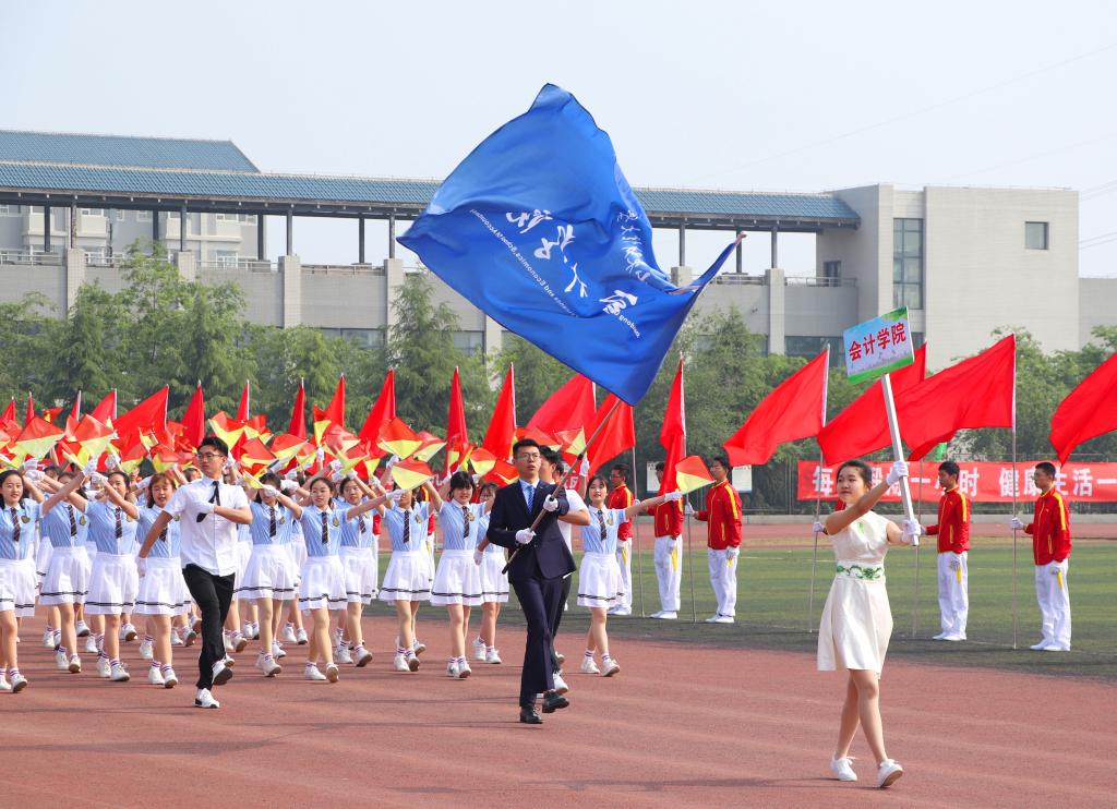 4月29日,山东财经大学2019年度春季运动会在圣井校区体育场盛大开幕,校领导、学校相关部门负责人和各学院领导出席开幕式。上午九点,伴着雄壮激昂的《运动员进行曲》,我校国旗护卫队、红旗方队、花束队和各学院方阵代表队迈着整齐的步伐,精神抖擞,依次庄严入场。由会计学院49名女生组成的花束队手持鲜花,肤如雪,黛若烟,灵瞳如玉如珠,倩影摇曳,倾国倾城倾尽流年!会计学院方队踏着坚定的步伐,喊着“意气少年,勇往直前,放马金鞍,会院争先”响亮的口号,目光如炬,直视远方,身披华光万丈,乘风破浪,飒爽的英姿彰显了会院昂扬的斗志。
