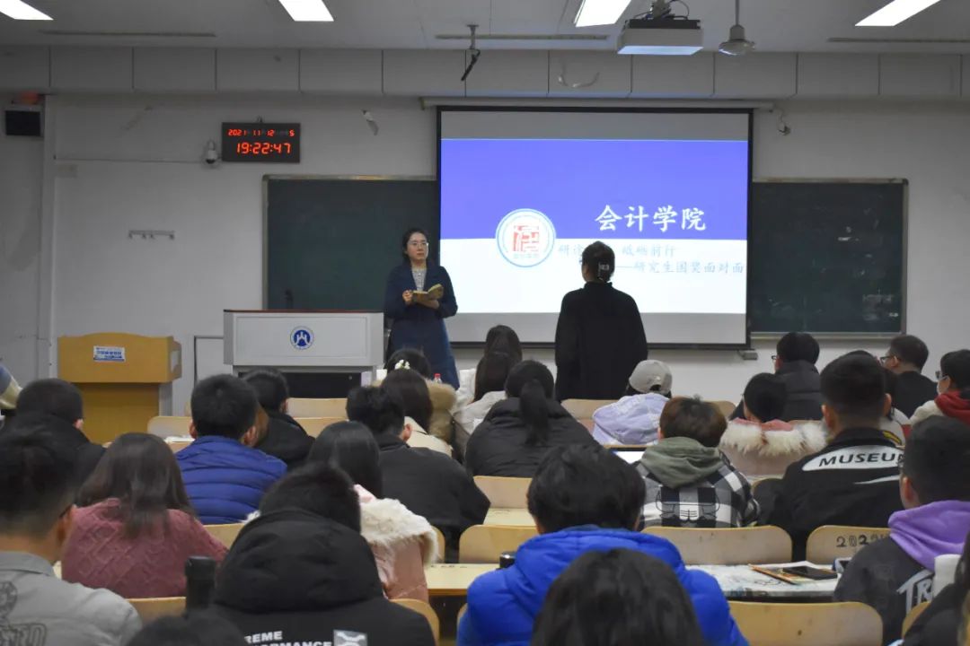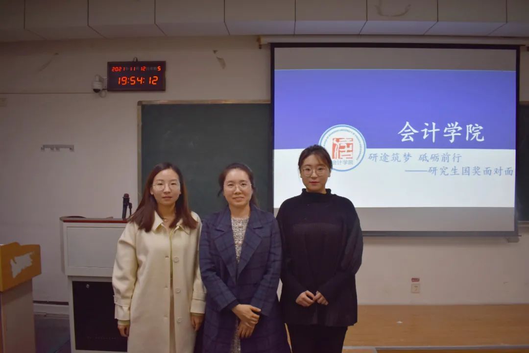 11月12日晚,会计学院2021年“研究生国奖面对面”活动在燕山校区逸夫楼403教室举行,会计学系主任王斌副教授作为指导专家应邀出席了本次活动。会计学院2021年国奖获得者亓哲和王晨宇作为主讲人,向参加活动的2021级部分研究生分享了她们研究生学习生活中的精彩经历与宝贵经验。