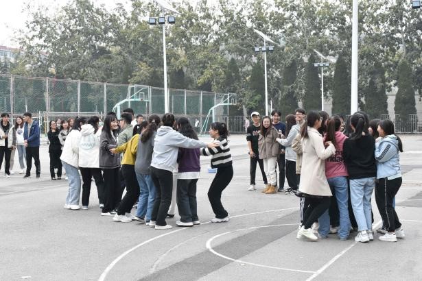 在“爱的抱抱”游戏中,主持人喊出数字,相邻的同学便按所喊数字抱成一团,没有抱团成功的则被淘汰,整个活动过程中,大家互相配合,默契程度和信任度得到明显提高,同学们在游戏中更深入地懂得了团队合作的重要性。