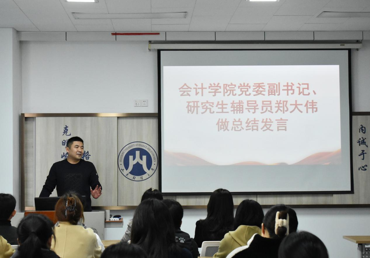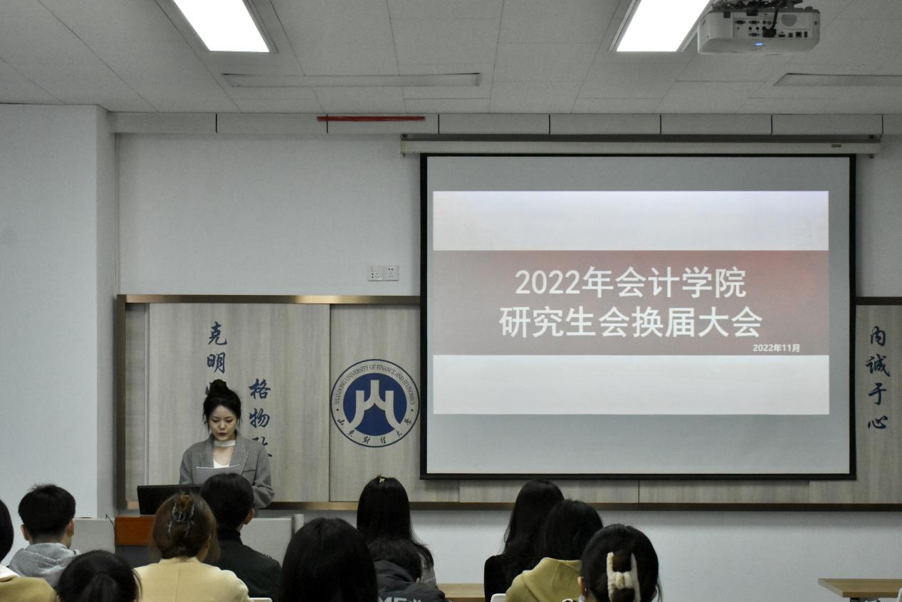 11月18日上午,山东财经大学会计学院第十二届研究生会换届大会在燕山校区逸夫楼Y305教室隆重举行。会计学院党委副书记、研究生辅导员郑大伟老师出席了本次大会,第十一届研究生会主席团、第十二届研究生会主席团、部长以及干事代表参加了本次会议。会议由2022级会计学硕班李玮主持。
