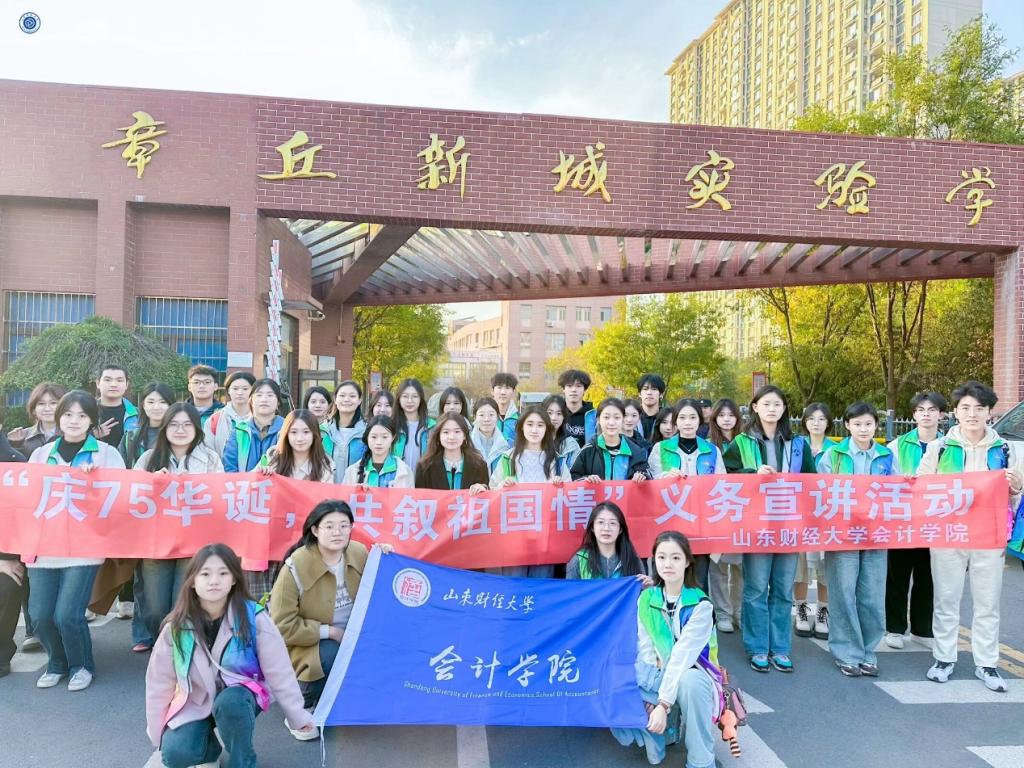 11月22日,会计学院学生走进章丘新城实验学校,他们向学生们讲述历史故事,进行诗歌朗诵,分享心得体会。这不仅激发了中学生们的爱国情怀,还让他们深刻认识到祖国发展的历史蜕变,增强了对中国未来高质量发展的信心。互动环节的分享与讨论,同学们加深了对爱国精神的理解与认同,激发了大家将爱国情感转化为具体行动的信念。活动最后,大家一同唱响《我和我的祖国》,在歌声中,大家携手并进,将这份爱国情怀传承下去,共同为祖国的繁荣富强贡献青春力量!