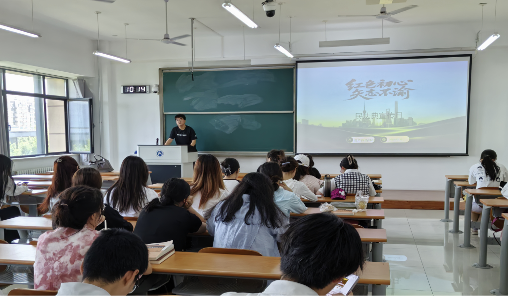 班会伊始,各班班长或团支书运用精心制作的PPT,深入浅出地为同学们讲解《民法典》的重要意义、主要内容及核心亮点。从物权编到合同编,从人格权编到婚姻家庭编,详细解读与大学生日常生活紧密相关的法律条款,如校园借贷、个人信息保护、兼职合同签订等,引导同学们在面对实际问题时,运用法律武器维护自身合法权益。