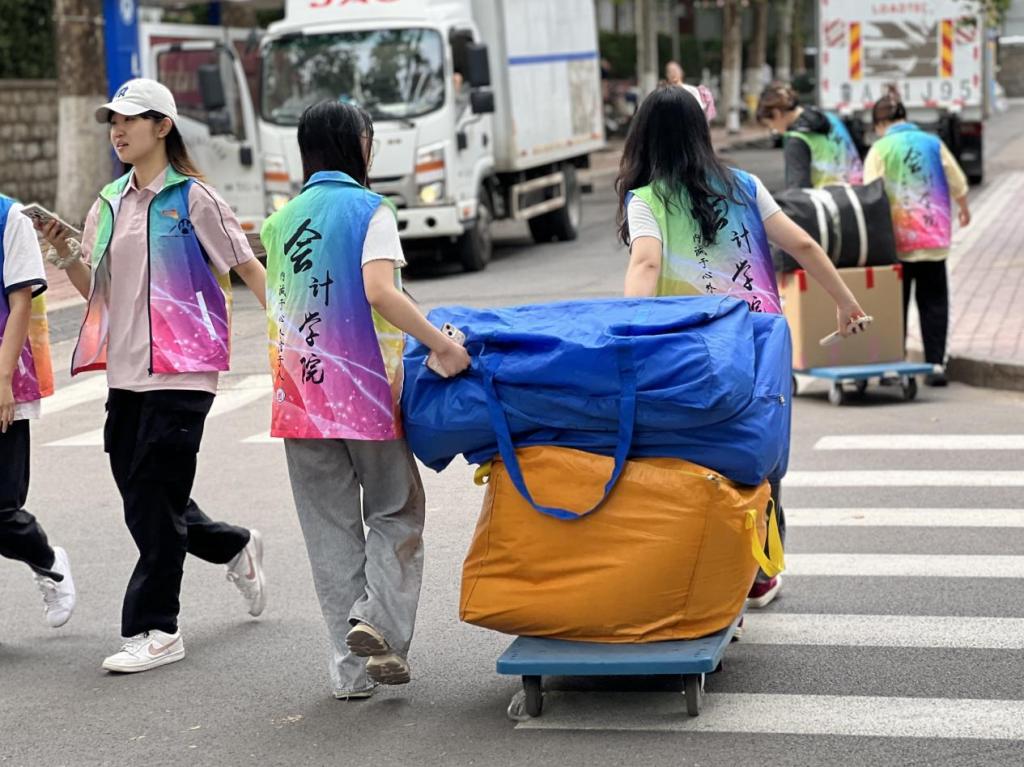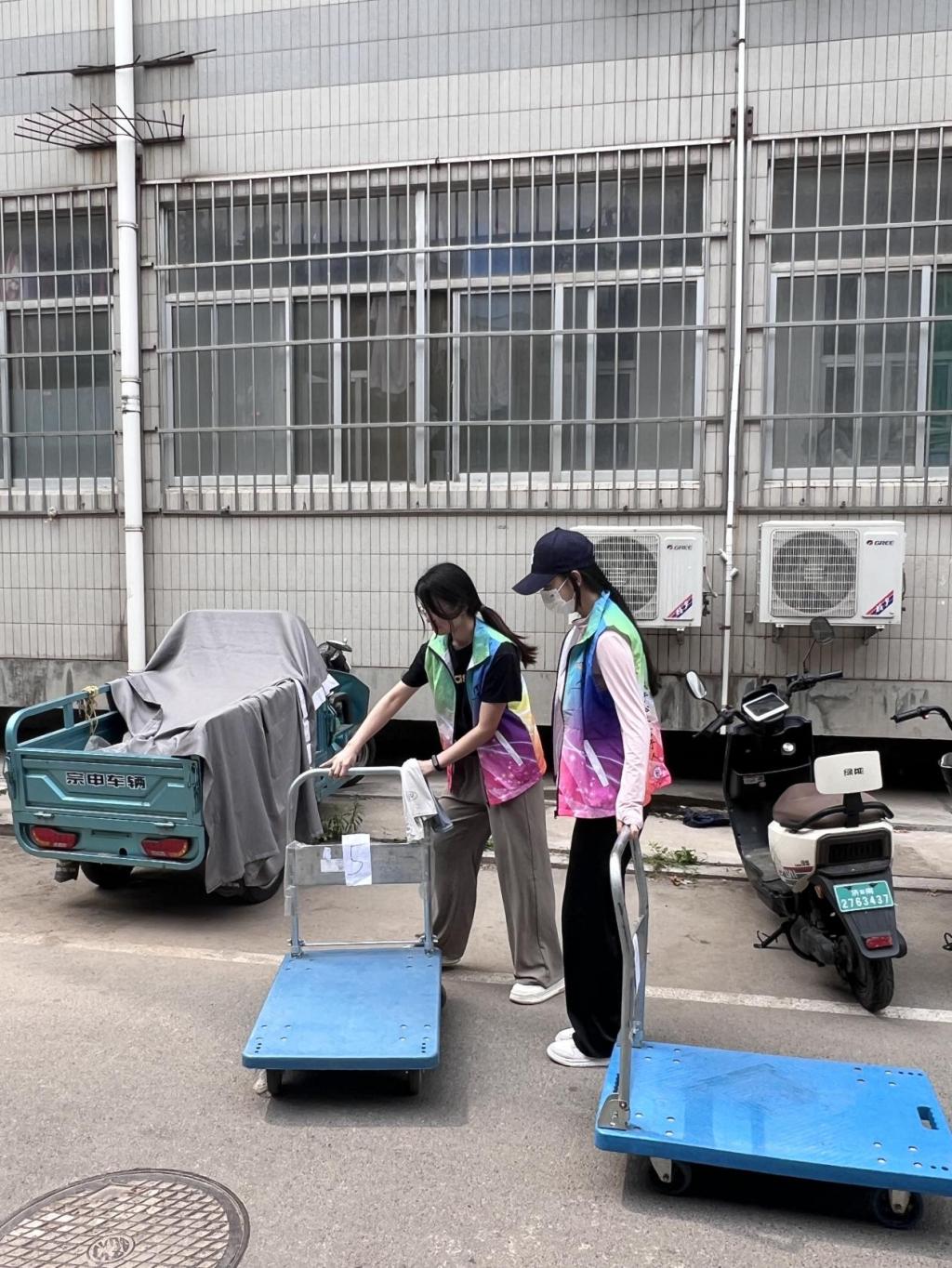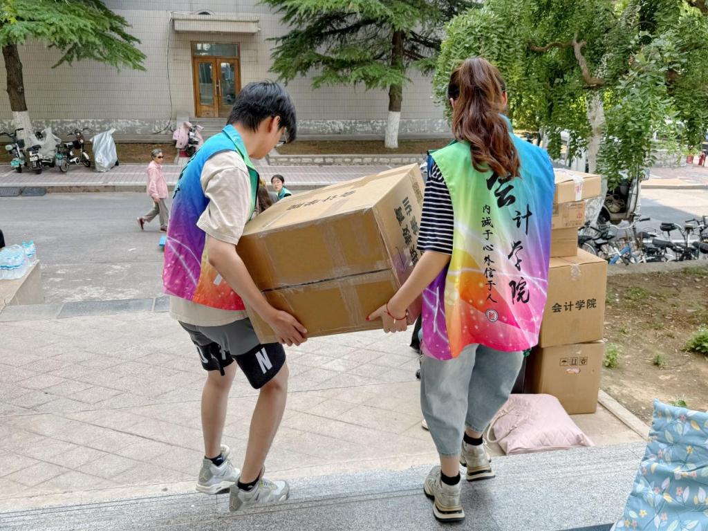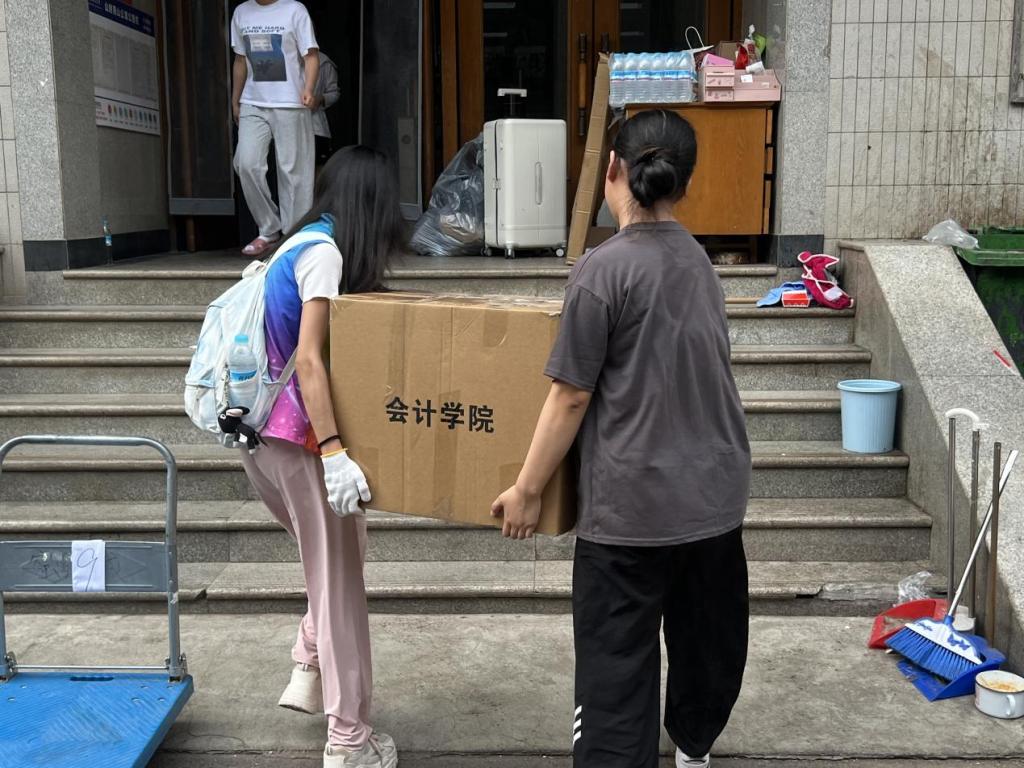 除了有序的组织,搬迁中的暖心场景随处可见:学生提前制作“行李标识卡”,注明新宿舍号与联系方式,减少搬运误差;或是自发组建“互助小组”,为体弱同学提供一对一帮扶;学院在四宿一楼设立“临时休息区”,备有防暑药品与湿巾。此外,志愿者们还承担着清查与归还工作,用细节诠释着“责任担当”。