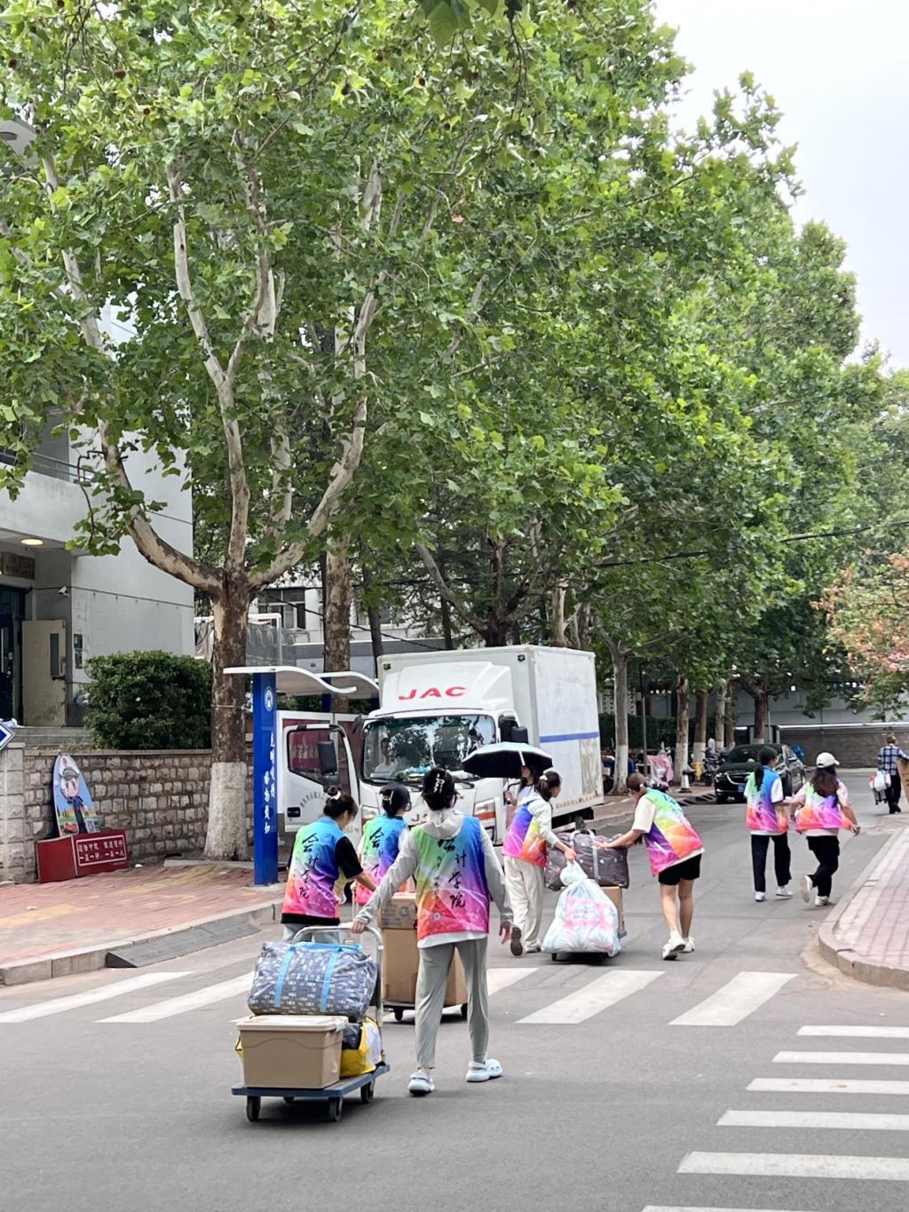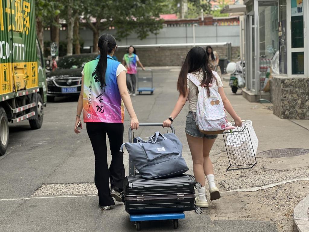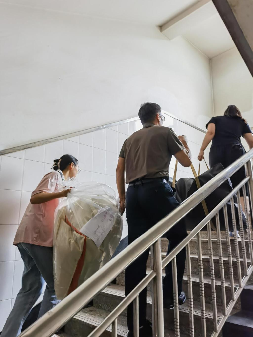 除了有序的组织,搬迁中的暖心场景随处可见:学生提前制作“行李标识卡”,注明新宿舍号与联系方式,减少搬运误差;或是自发组建“互助小组”,为体弱同学提供一对一帮扶;学院在四宿一楼设立“临时休息区”,备有防暑药品与湿巾。此外,志愿者们还承担着清查与归还工作,用细节诠释着“责任担当”。