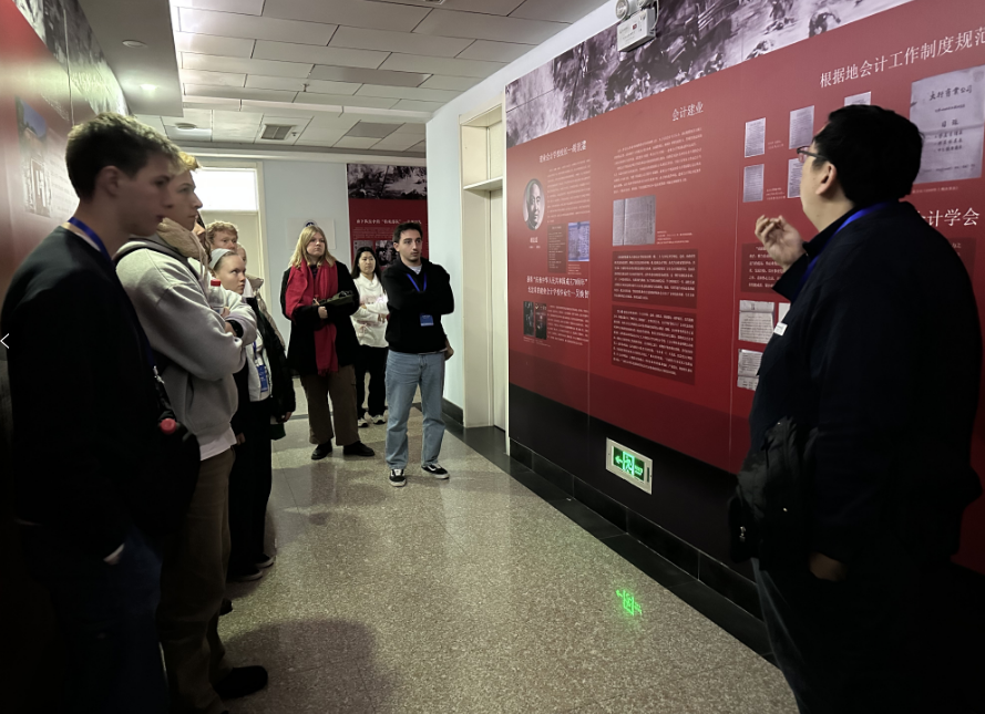 报告结束后,访学团参观了“红色会计”主题展。访学团领队、沃隆港大学商法学院会计系主任黄泰然博士向访学团学生介绍了沃隆港大学商法学院与会计学院多年来的合作历程。