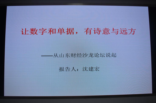 2019年10月19日下午,沈建宏先生应我院邀请,在燕山校区逸夫楼Y320做题为《让数字和单据,有诗意与远方—从山东财经沙龙论坛说起》的主题报告。讲座由MPAcc中心主任、会计学院副院长朱德胜主持,会计学院2018级、2019级会计专硕聆听了讲座。沈建宏是山东省青年作家协会理事,大众报业集团记者、编辑,也是山东大型读书活动主讲人以及山东第一届“明湖论道”财经沙龙活动策划人。