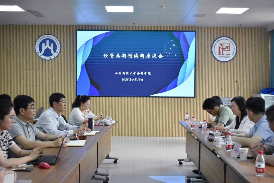 为进一步推动有组织的科研,加强与学术期刊编辑之间的互动交流,提高学院师生的科研水平,6月19日上午,会计学院在Y410举办经管类期刊编辑座谈会,邀请《人大复印报刊资料》副编审靳毓、《商业经济与管理》孙豪副社长、《财务研究》编辑部主任孙蕊、《东岳论丛》编辑部研究员王成利、《改革》杂志社执行总编辑文丰安、《会计之友》杂志社社长兼总编笑雪、《商业会计》杂志社编辑部主任、主编助理钟音等七位专家就学术论文写作与投稿相关问题进行座谈。副院长吴大新主持座谈会,院长葛永波、青年科研骨干、全体博士研究生参加了本次活动。