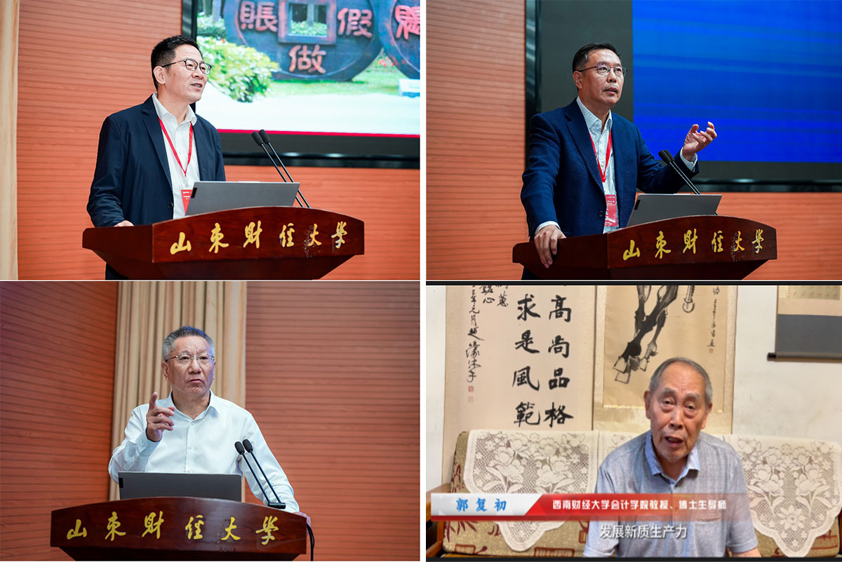 下半场主题报告由山东大学财务部部长路军伟教授主持,上海国家会计学院党委书记张锋、对外经济贸易大学原副校长张新民教授、北京工商大学原副校长谢志华教授,分别围绕新时期财务工作、企业战略与资产负债表、《公司法》修法的逻辑进行主题演讲。西南财经大学会计学院郭复初教授围绕新质生产力与财务理论创新进行线上发言。