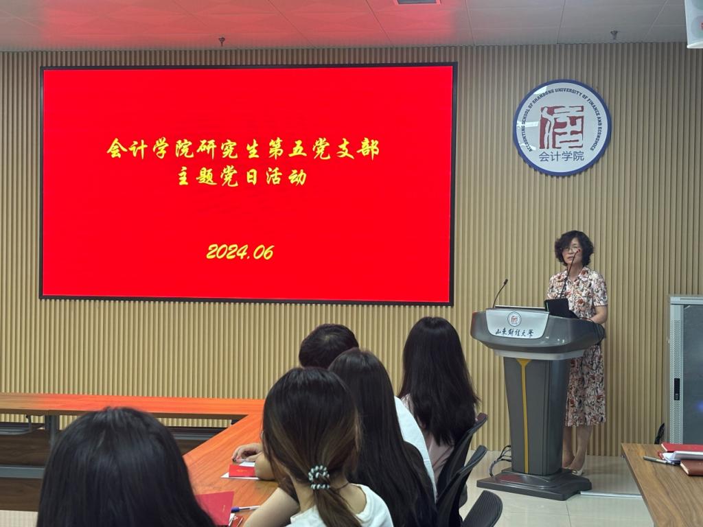 6月17日,校党委委员、纪委书记、监察专员王玉花参加所联系的会计学院研究生第五党支部主题党日活动。会计学院党委书记邵文涛、院长葛永波、副书记郑大伟以及支部全体党员参与,活动由支部书记陈欣主持。