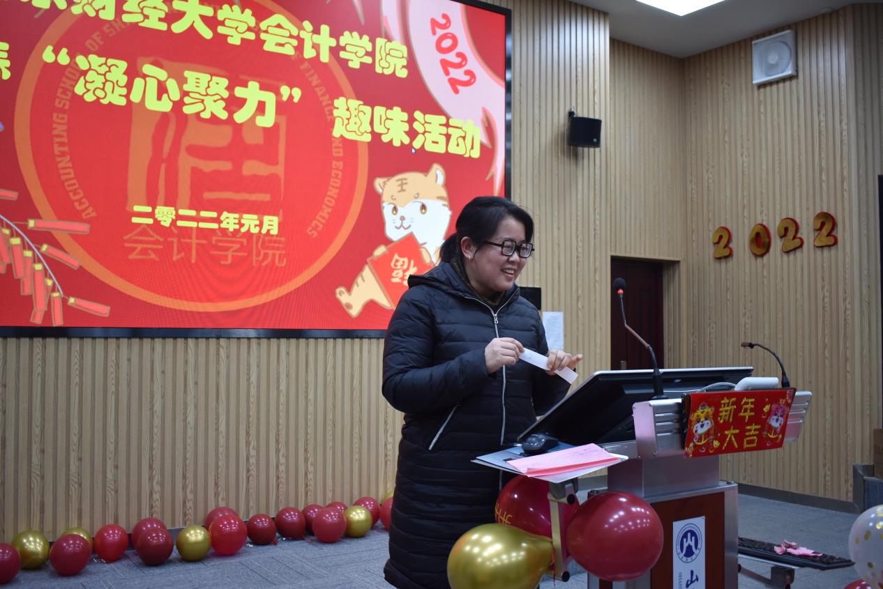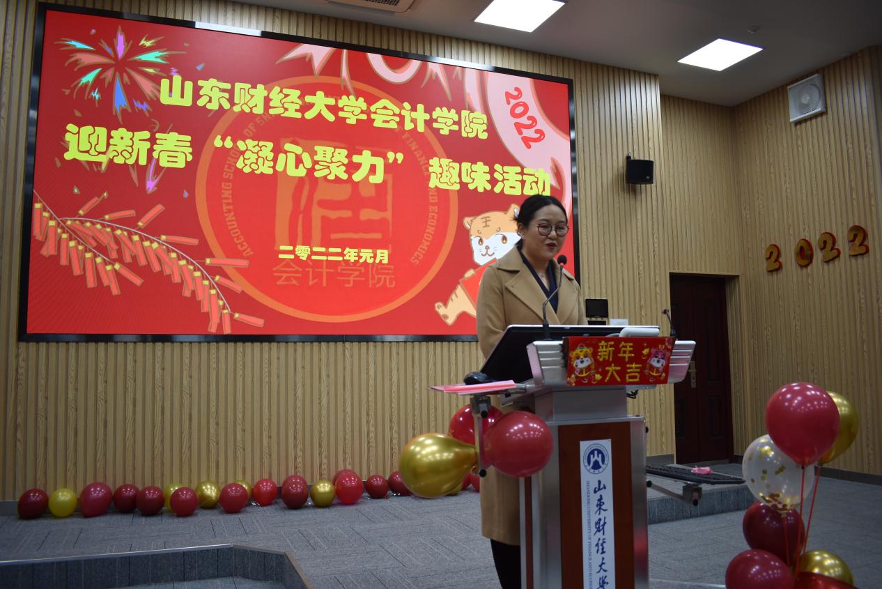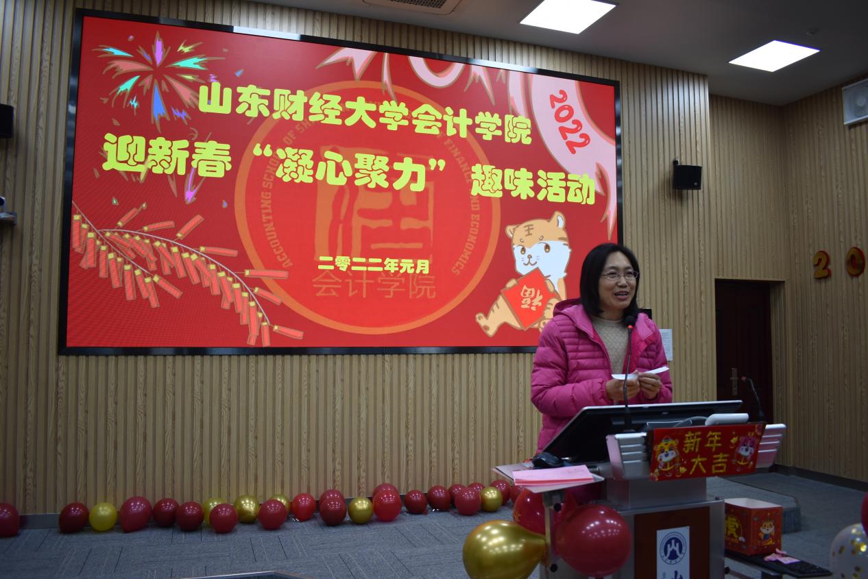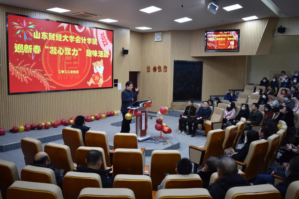 2022年1月3日,会计学院迎新春“凝心聚力”趣味活动在逸夫楼温馨开幕。院长王爱国、党委书记邵文涛、MPACC中心主任兼副院长朱德胜等班子成员出席,学院全体教职工参加。