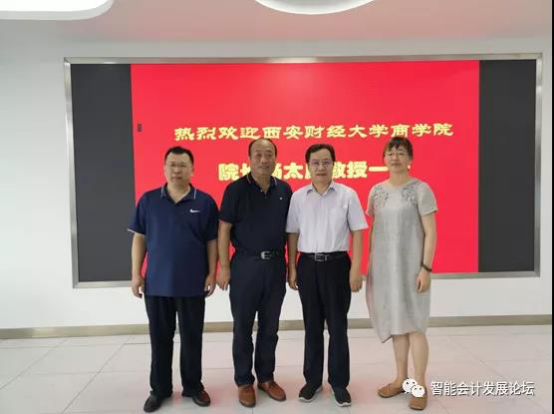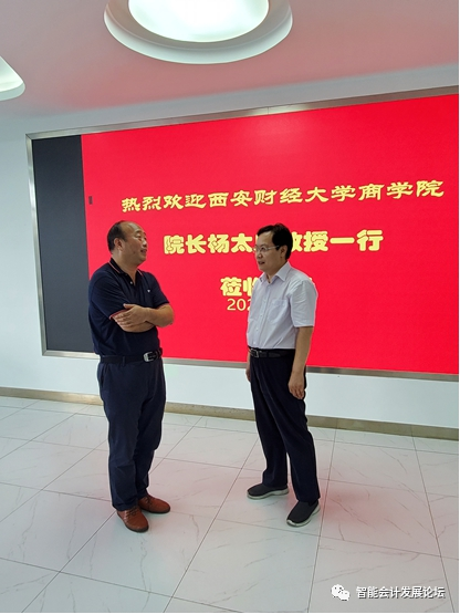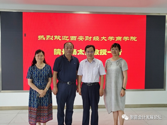 2020年8月12日下午,西安财经大学商学院院长杨太康教授、商学院分管教学副院长陈淑芳教授、商学院会计系主任贡晓军教授访问我院。王爱国院长于智能会计实验室和来访嘉宾展开会谈,智能会计研究中心执行主任滕晓东出席座谈。