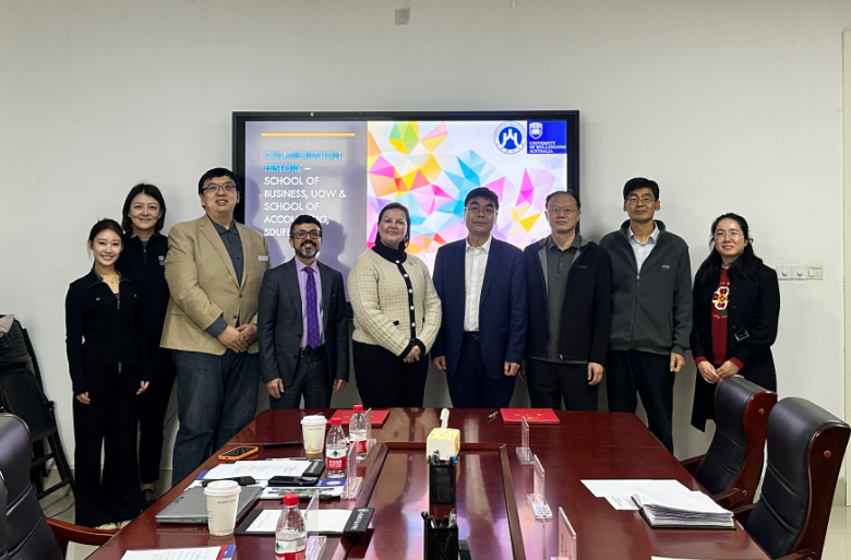 11月3日上午,澳大利亚沃隆港大学(University of Wollongong, UOW)商学院院长Belinda Gibbons,国际市场招生总监Baris Satar,中国市场总经理Winn Wen,商学院会计系主任Tairan Huang,中国市场华北地区招生经理Alice Wan一行到访我院,就深化两校合作开展座谈交流。山东财经大学会计学院院长葛永波,副院长王守海、吴大新,会计学系主任王斌等出席座谈会。