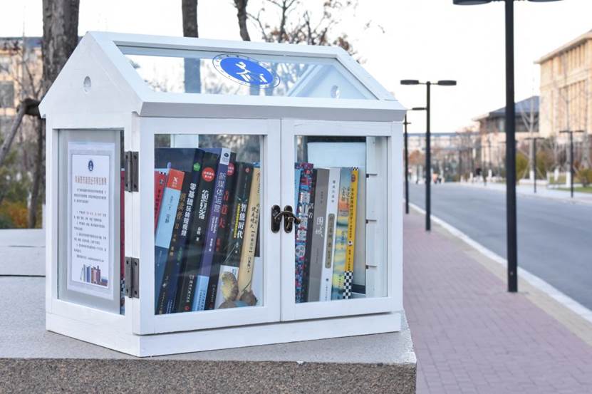 在九号、六号教学楼和第三食堂,时不时有同学伫立在会计学院“鸟巢图书馆”前翻阅书籍。经过一个多月的精心准备,这个有着明亮蓝白色鸟巢式外观并放有书籍的“小木屋”,12月13日刚刚亮相,就成了校园“团宠”。
