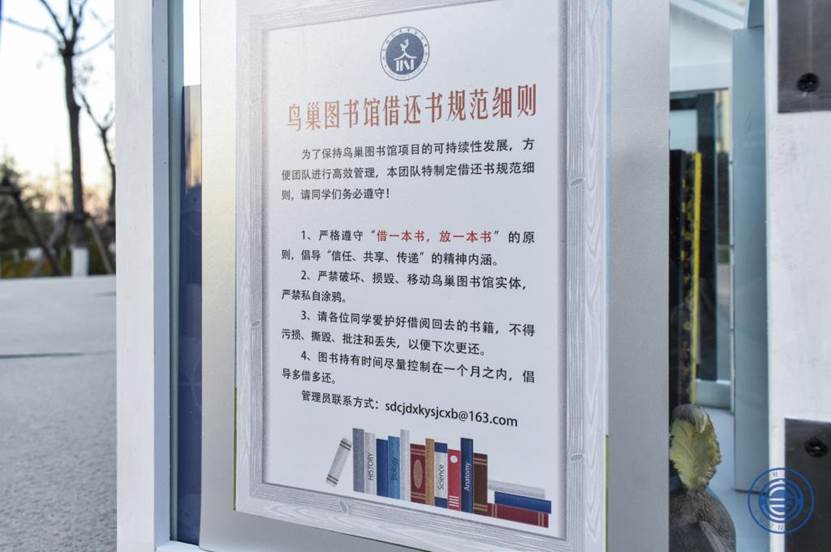 如今,依靠学院直接补助与创赛奖金支撑,投资5500多元的3个“鸟巢图书馆”终于惠及了财大学子,安装投放当天,李铭毓不止一次诉说着期待与激动,非常感谢“学院领导老师的大力支持”。这个星期里,校园道路及部分楼宇内还将投放4个鸟巢图书馆。他们只有一个想法,就是让“信任、共享、传递”的理念扩散出去,实现“一本书多人读,一人读多本书”,让有限的图书无限的流动,让书香墨韵溢满校园。