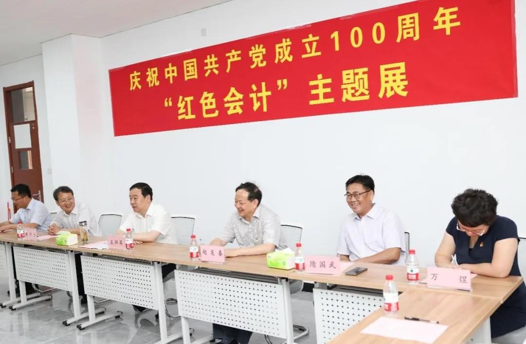 在庆祝中国共产党成立100周年之际,为进一步丰富“四史”学习内容,推进党史学习教育,探索“实践思政”与课程思政深度融合,6月28日下午,会计学院举行“岁月回响——庆祝中国共产党建党100周年‘红色会计’主题展览”。山东财经大学党委书记王邵军,党委副书记赵友春、韩作生,学校部门领导,会计学院师生等参观展览。